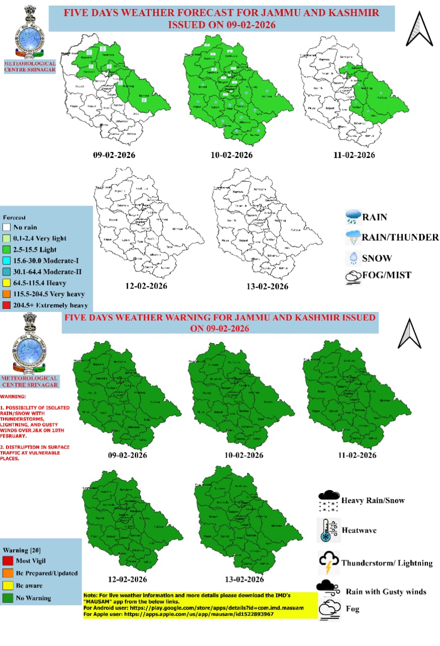 𝙒𝙚𝙖𝙩𝙝𝙚𝙧 𝙐𝙥𝙙𝙖𝙩𝙚 𝙅&𝙆 𝙁𝙤𝙧𝙚𝙘𝙖𝙨𝙩 9th Feb:Light Rain/snow at few higher reaches towards night.