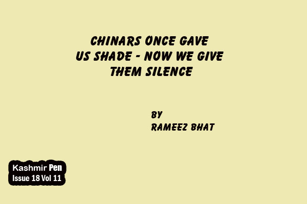 There was once a Kashmir where people planted trees not for themselves, but for generations they would never live to see. Our elders placed hope into the soil with their own hands, nurturing Chinars, willows, poplars, walnut trees, and orchards with the understanding that they might never sit in their shade or taste every fruit. They planted with faith in tomorrow, and they planted for us. Today, we stand under that same shade, yet we carry axes.