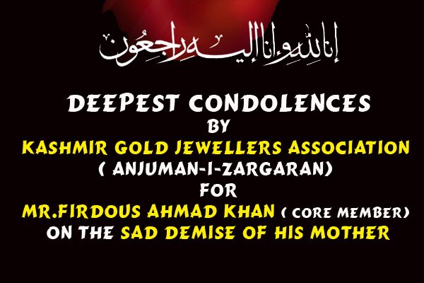 KASHMIR GOLD JEWELLERS ASSOCIATION (ANJUMAN-E-ZARGARAN) made heartfelt condolence on the sad demise of MOTHER of one its core members MR.FIRDOUS AHMAD KHAN shop situated at sopore.