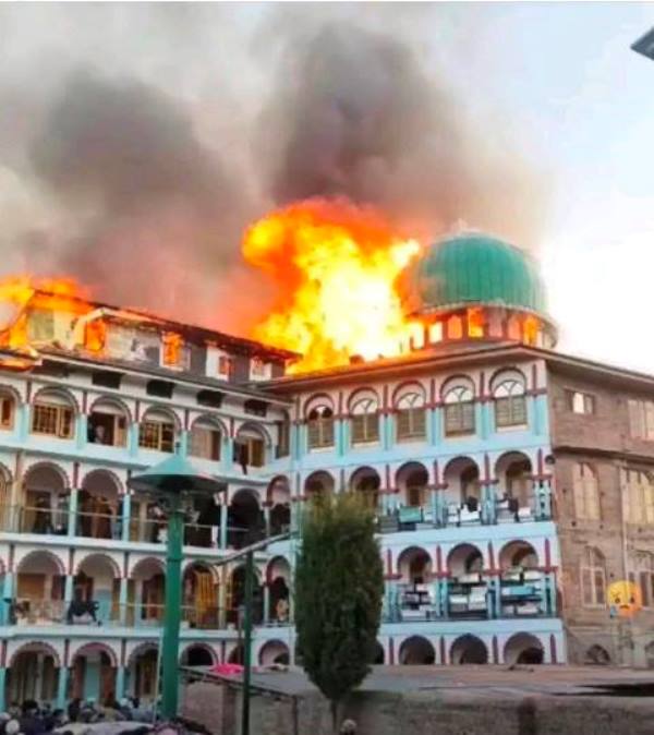 Srinagar, Apr 10 : A fire broke out at Jamia Ashraf-ul-Uloom, Hyderpora area of Srinagar on Friday, leaving two civilians and one fireman injured, officials said.
