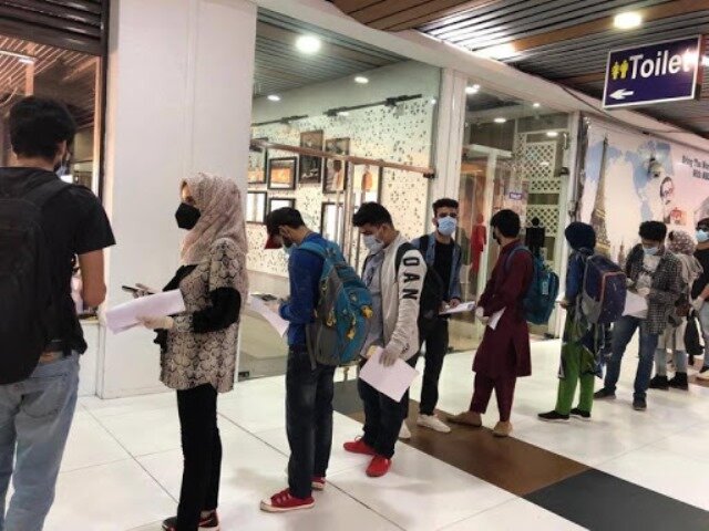 Officials said the students were undergoing screening at the airport after which they will be sent to administrative quarantine for a period of 14 days as mandated under the guidelines issued for curbing the spread of COVID-19.