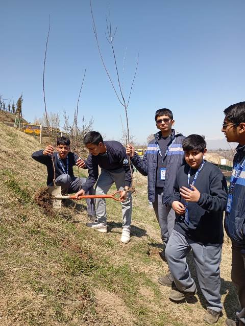 The plantation drive took place in both the boys’ and girls’ sections of the campus. Students in the girls’ section planted red pear and pine horn trees, while those in the boys’ section planted plum and almond trees. These species were carefully selected to enhance campus biodiversity and contribute to long-term ecological balance.