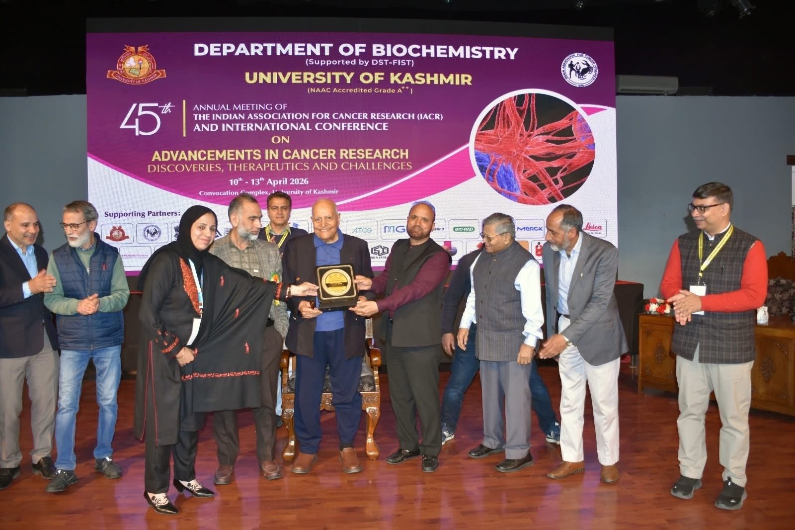 Srinagar, April 13: The 45th Annual Meeting of the Indian Association for Cancer Research (IACR), along with a four-day international conference on “Advancements in Cancer Research: Discoveries, Therapeutics and Challenges,” concluded on a high note at the University of Kashmir’s main campus.