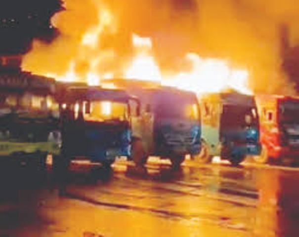 An official from to Fire and Emergency Services, rold news agency Kashmir News Corner — KNC, the blaze was reported at around 11:27 PM, following which firefighting teams rushed to the spot and found multiple buses engulfed in flames.