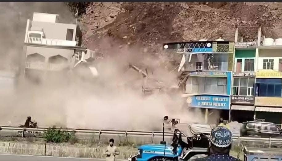Udhampur, Oct 12 (KNC): A massive landslide struck the Narsoo-Samroli area along the Jammu-Srinagar National Highway in Udhampur district on Saturday night, causing the collapse of a hotel and several adjoining buildings, officials said.